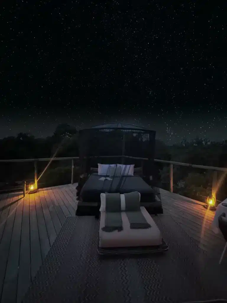 Something I particularly loved were the curated experiences Ishara offers. Having a beautiful breakfast set up for us in the bush after our morning drive was so special. “Two of my favourite experiences were capturing the spirit of the animals through the lens and falling asleep in the star bed, surrounded by the sounds of nature and a starry sky that felt endless,” Matt reminisces.